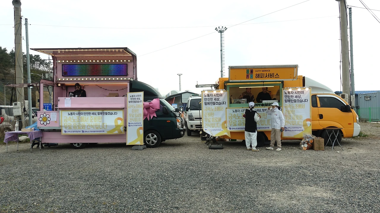 금속노조에서 예년처럼 푸드트럭이 와서 떡볶이와 어묵을 나눠주었다. 커피 차량도 있었다. 몇 년째 해마다 이 날이면 만나는 박근서 광주전남지부 사회연대위원장도 반가웠다. 해를 거듭할수록 최장기 해고자일 텐데 15년째일 3M 복직 소식은 차마 묻지 못했다.