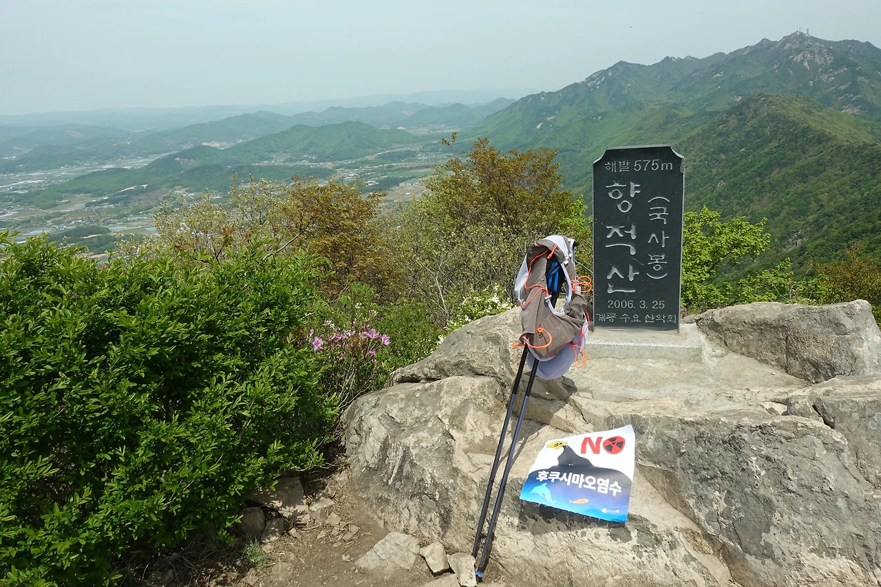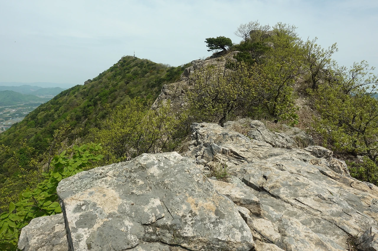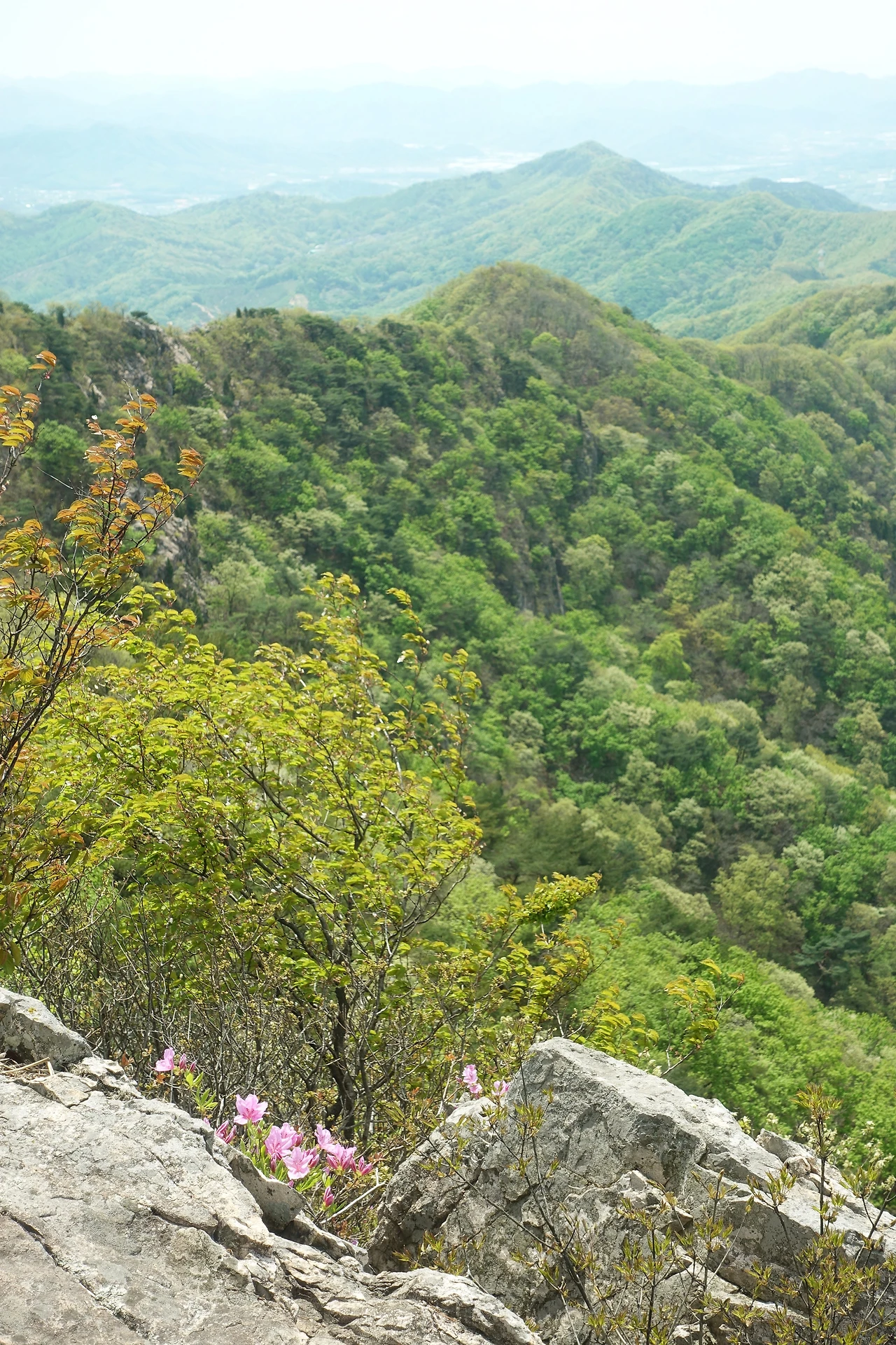 거대한 바위를 지나 정상까지 가는 길에 진달래가 활짝 피었다.