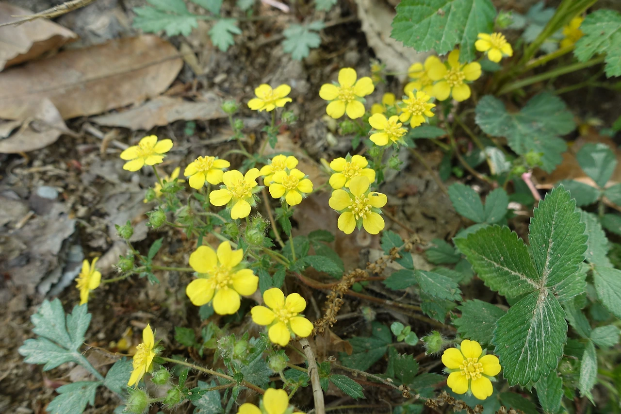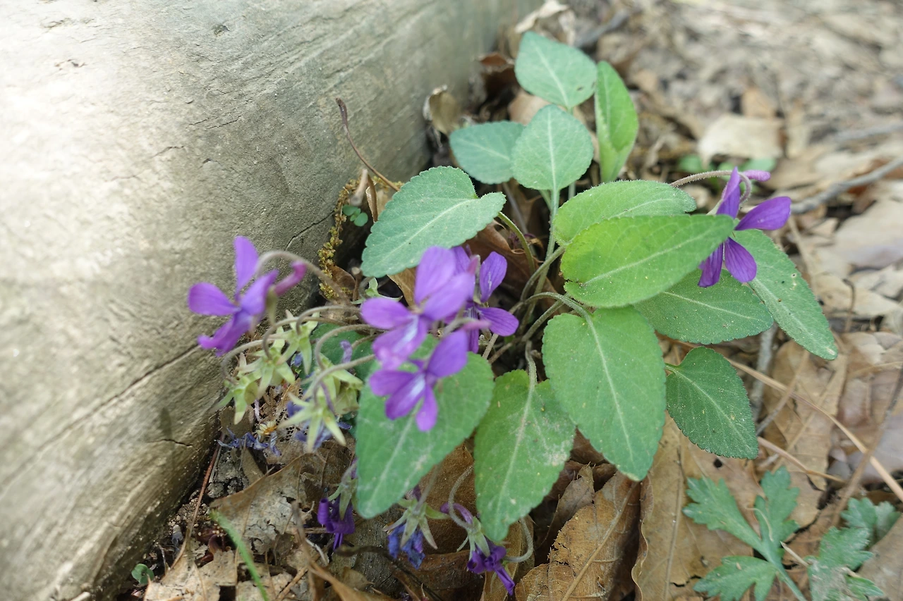 정상에서 치유의 숲 쪽 계단으로 계단으로 내려오는 길에 자잘한 꽃들이 예쁘다.
