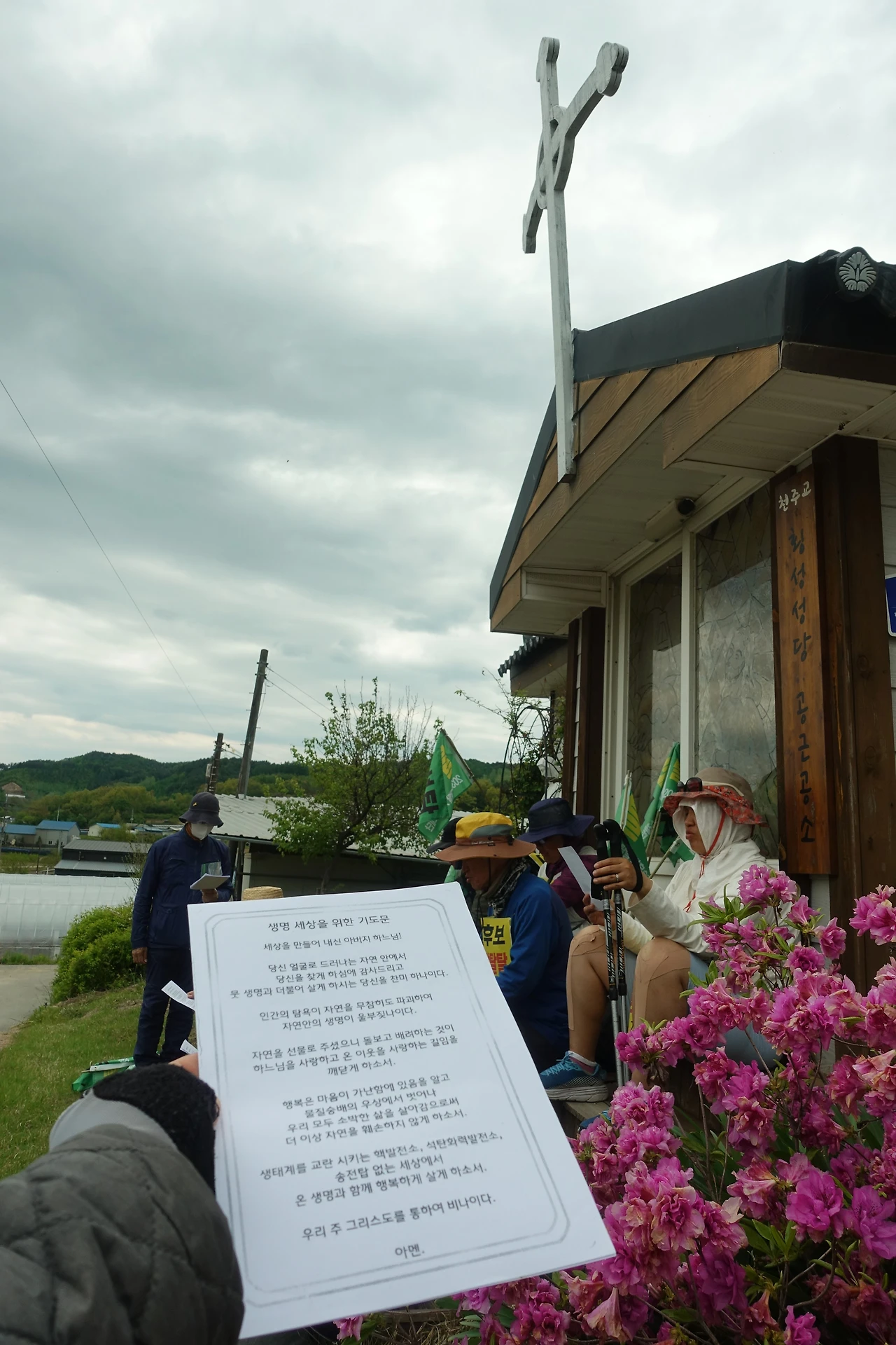 생명세상을 위한 기도문을 읽고 이날 순례를 마쳤다. 가브리엘이 고맙게도 차로 원주까지 태워다 주셨다.