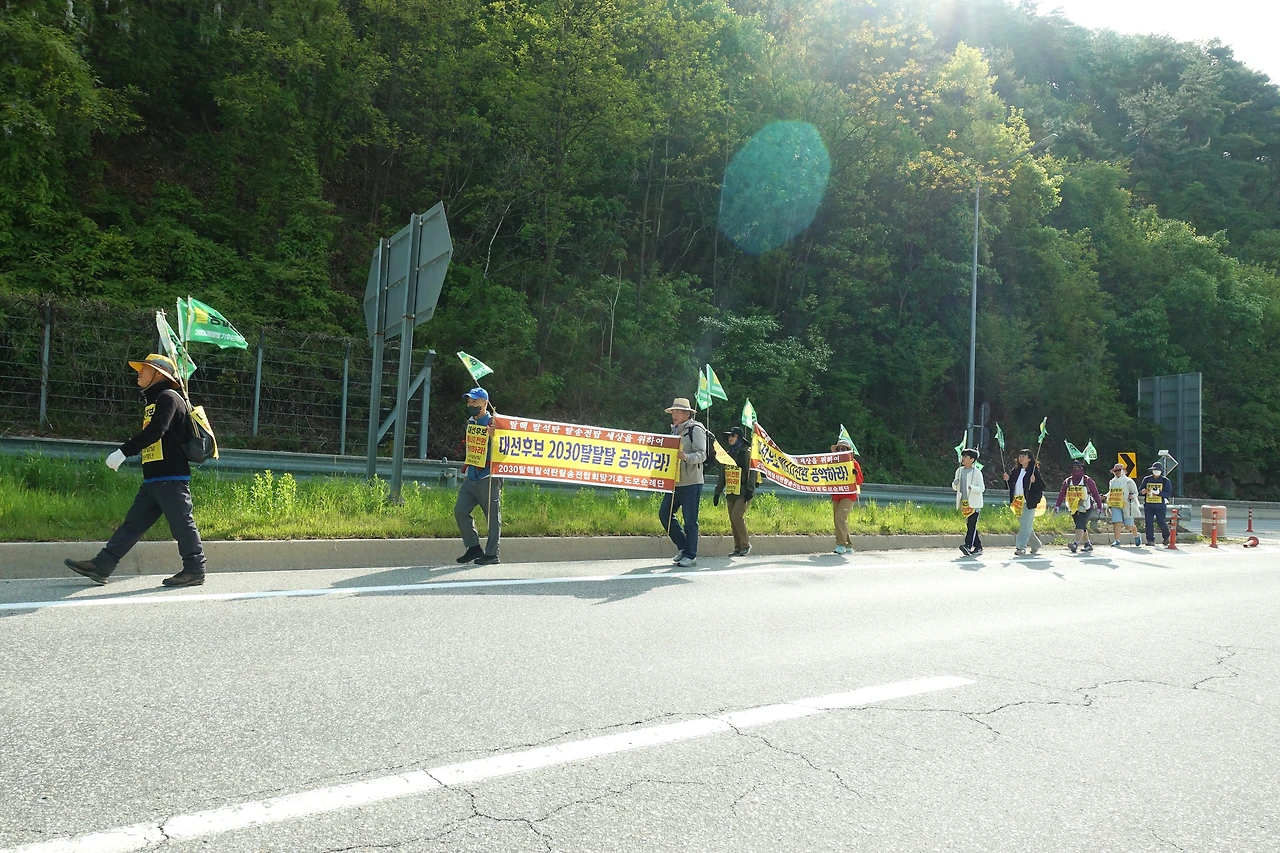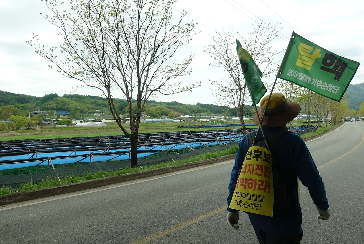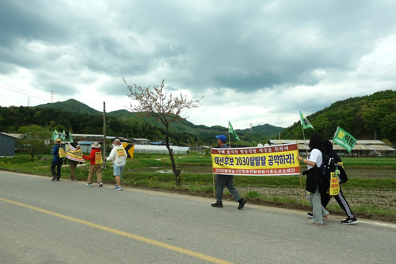 6.3 대선을 앞두고 삼척석탄화력반투위를 비롯한 45개 단체 공동주최로 대선후보에게 2030 탈핵탈석탄탈송전탑 공약을 요구하며 삼척에서 광화문까지 4월 25일부터 21일간 368km 탈탈탈 기후순례를 진행합니다! 생명을 살리는 길, 탈탈탈 순례에