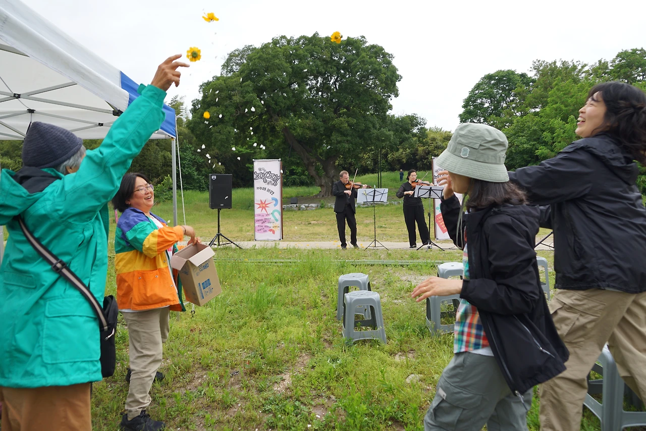 신부님의 공분을 달래듯 군산시립교향악단의 바이올린과 비올라 주자 두 분의 감미롭고도 유쾌한 연주가 있었다. 일순 팽나무 앞에서 흥겨운 춤바람이 불었다.