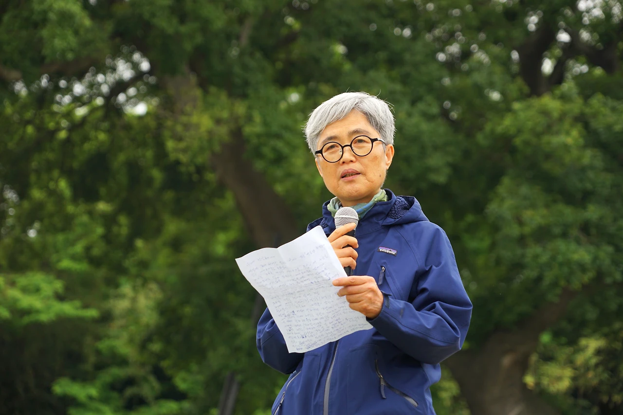 저는 미군기지 근처만 오면 이 등골에서 설사가 올라와. 꼼짝을 못 해요. 화가 그렇게 나요. 한 달에 한 번씩 그런 다짐을 해야겠습니다. 600년을 견뎌온 팽나무 앞에서 우리도 팽나무처럼 꿋꿋하게 서서 자주(自主)하고 외세의 간섭받지 않고 우리가 원하는 대로 할 수 있는 그런 마음의 다짐을 가졌으면 좋겠습니다.