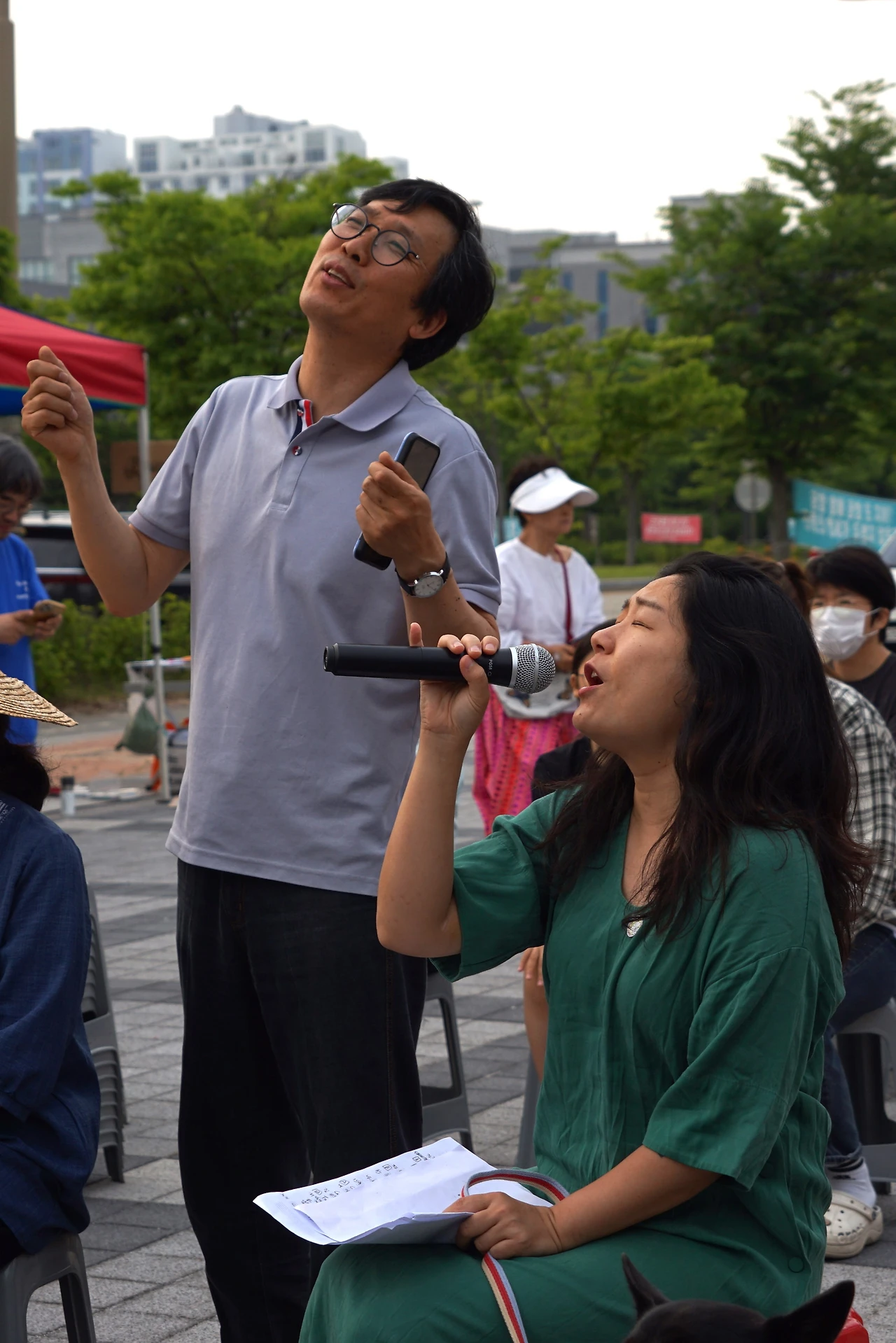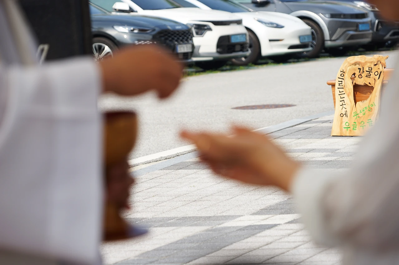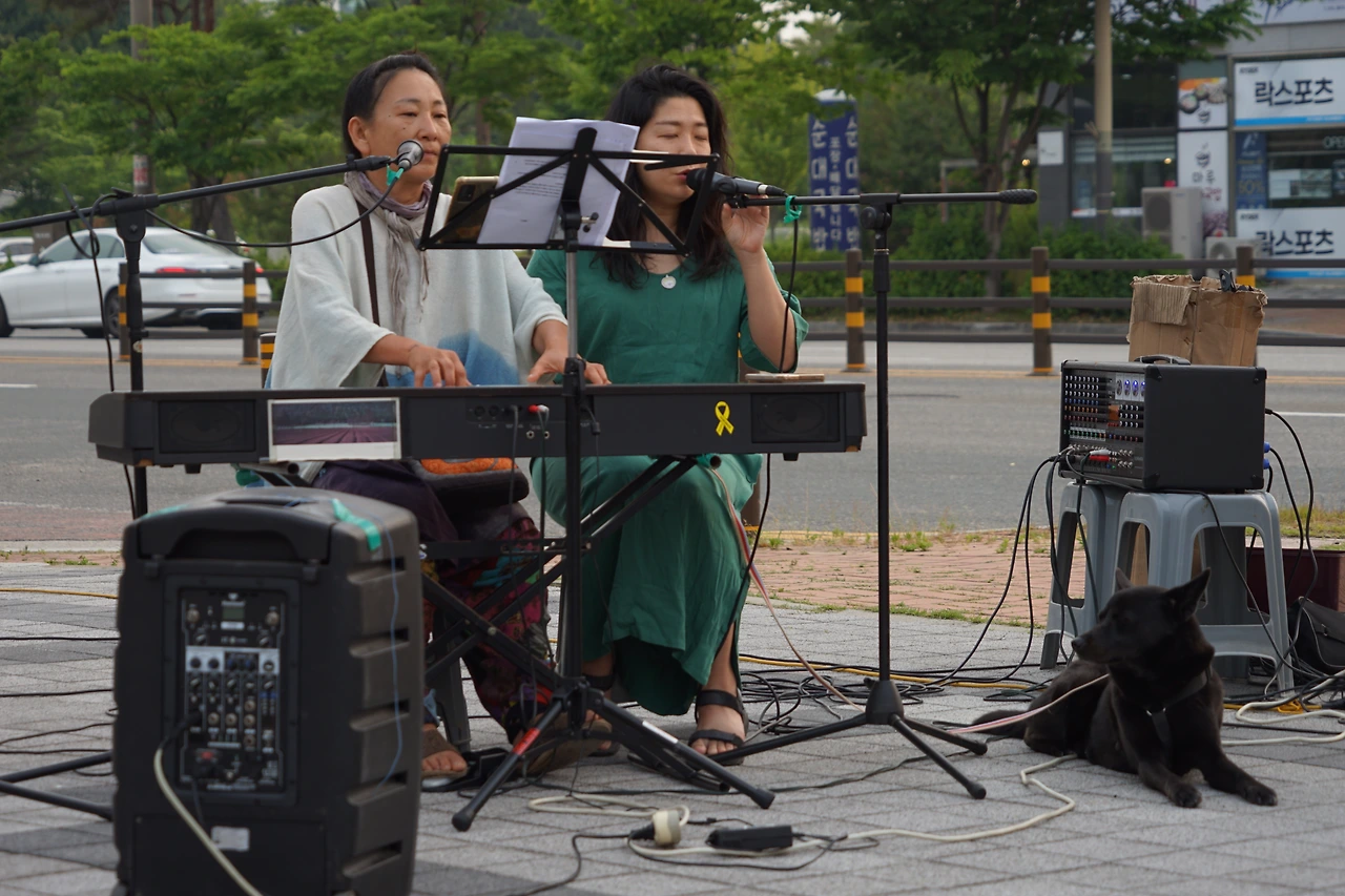 천막 옆 문정현 신부님을 뵙자마자 신나게 불렀는데 아뿔싸 오후 세 시 미사 중이었다. 전주 전북지방환경청 앞에선 두 번째, 새만금 상시 해수유통과 생태계복원 기원 월요 미사로는 28회째였다.