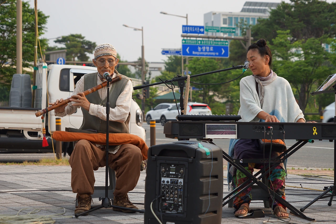 오후 다섯 시부터 한 시간 반 동안 공연에는 팽수의 여는 소리, 광주 나무의 친구 강숙향, 캄캄밴드, 까만 개 흑당이와 함께 온 오지은과 나무, 인월 장인의 대금과 나무의 연주와 노래가 있었다.