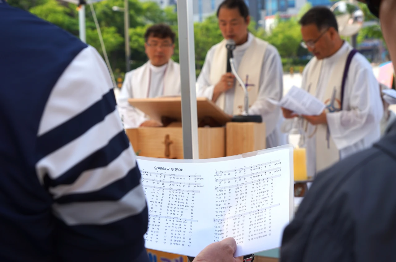 어느새 마침성가에 ‘함께해요 부동의!’ 노래 악보가 게재되었다. 16절의 그 노래는 길기도 길어서 생명 평화 정의 신앙 네 구간으로 나눠 부를 수 있다.