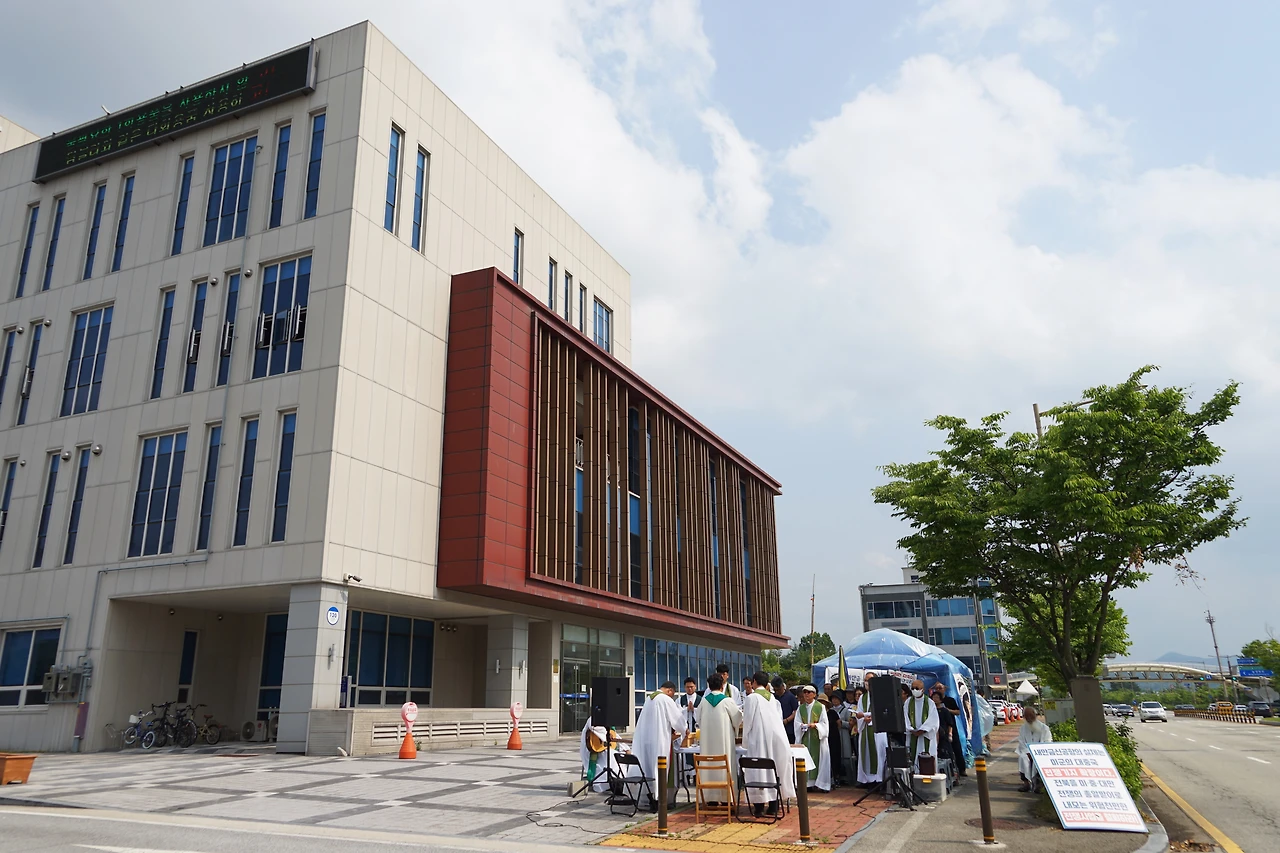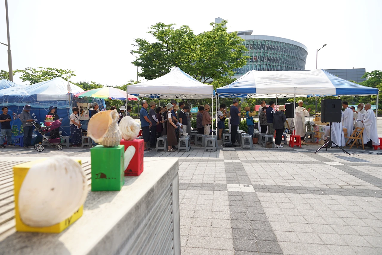 전주 전북지방환경청 앞에서 5회째, 해창갯벌부터 치면 31차 월요 미사를 드렸다.