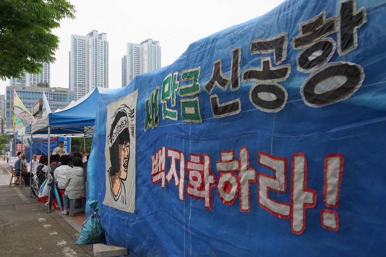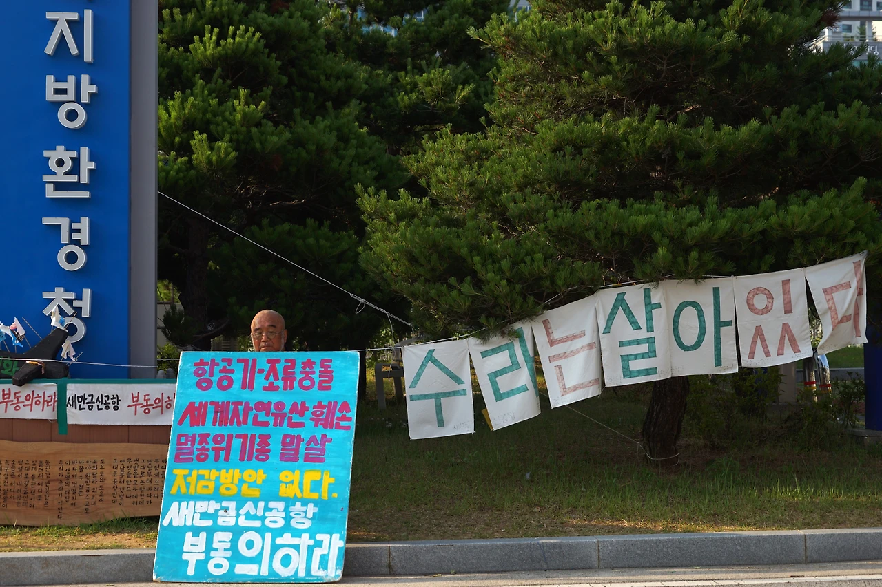 전주 전북지방환경청 앞 새만금 신공항 환경영향평가 부동의 촉구 천막농성