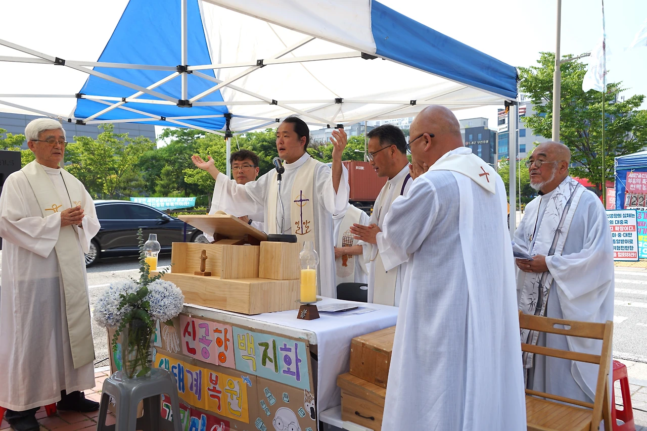 ◎ 주님, 이 땅을 위한 우리의 기도를 받아주시고 평화와 생명의 길로 인도하소서. 아멘.