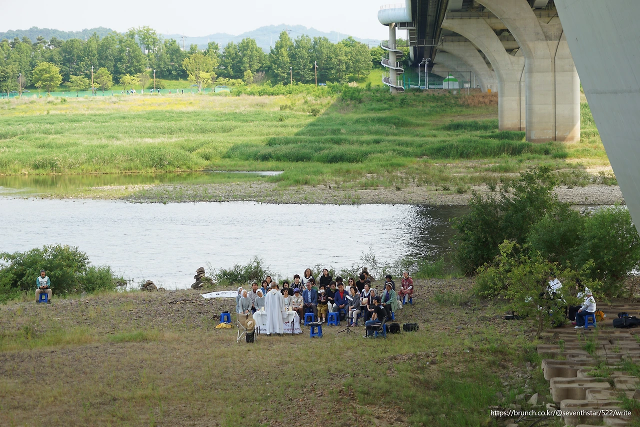 지난 5월 30일 금요일, 세종시 한두리교 아래 세종보 천막 농성장 미사 때 뵈었던 분들이 오후 네 시부터 오셨다.