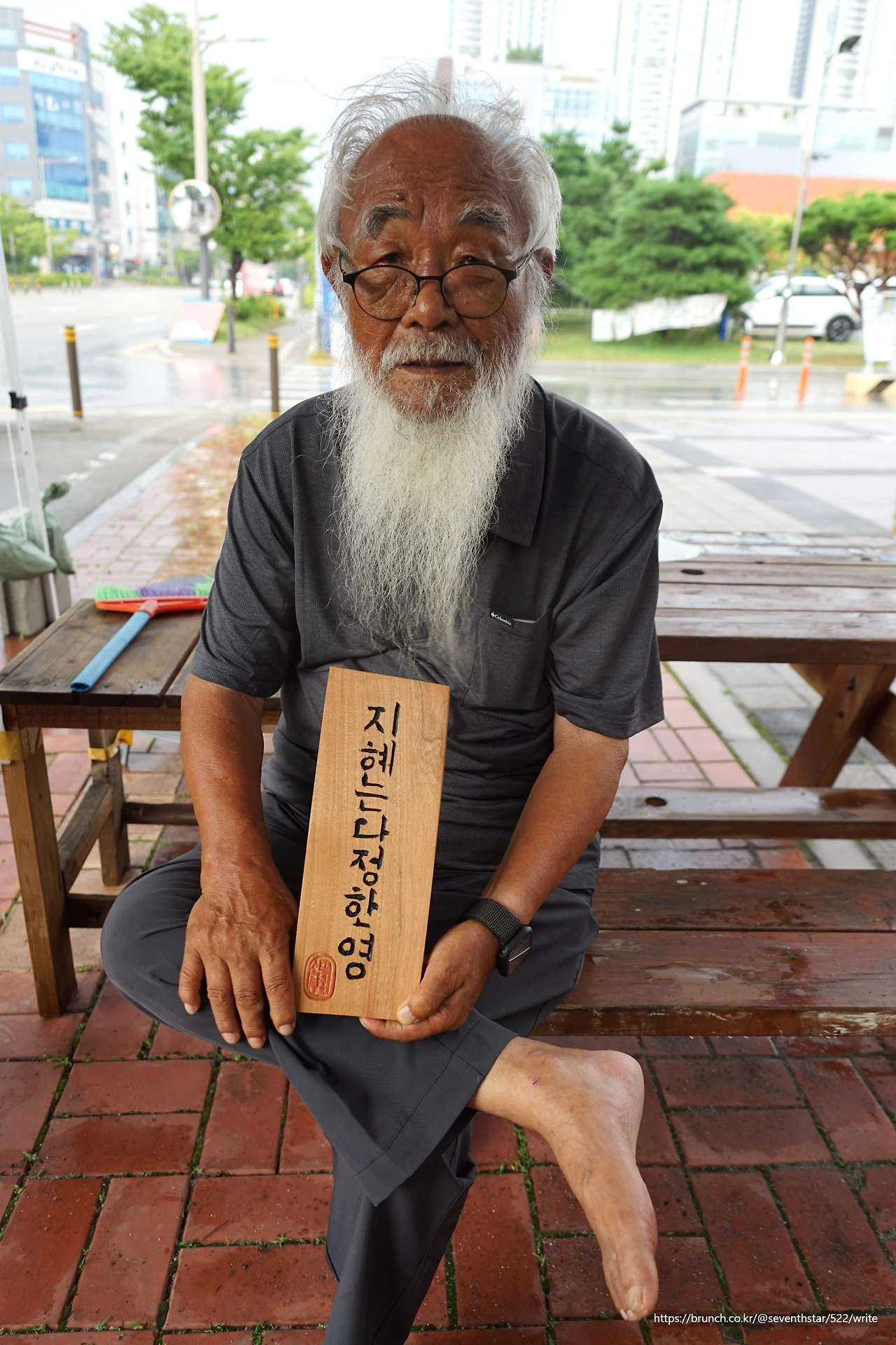맑은 하늘에 먹구름이 드리우더니 빗방울이 떨어지기 시작했다. 사람들이 뛰기 시작했다. 진열해 놓은 신부님 서각을 천막 안으로 옮기자마자 천막 위 덮개 타프에 물이 고여 주저앉기 시작했다. 셋은 우산 끝으로 타프를 올려 물을 덜어내려 했다. 우왕좌왕 소동과 우박처럼 쏟아지는 빗방울 소리에 어느새 신부님이 눈을 뜨고 앉았다가 일어서계셨다. 책상을 옮겨 그 위에 올라가서 타프 위 물을 쏟으라고 하셨지만, 그 소리는 빗소리에 묻히고 말았다. 세 장난꾸러기들은 신부님 말씀엔 아랑곳하지 않고 동심으로 돌아가 물장난을 하고 있었다. 그렇게 지독하던 더위가 순식간에 사그라들었다. 내 비탄과 고통도 세 명의 장난을 바라보며 설핏 희석되었다.