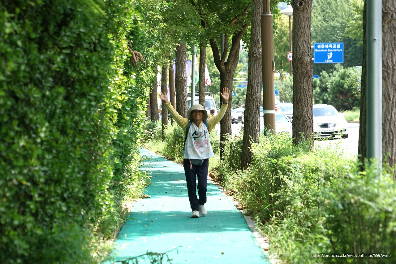 점점 더워진 열기로 땀을 비 오듯 흘리며 걷고 있지만 음악에 맞춰 춤추고 깃발을 흔들며 경쾌하고 즐겁게 걸었습니다.
