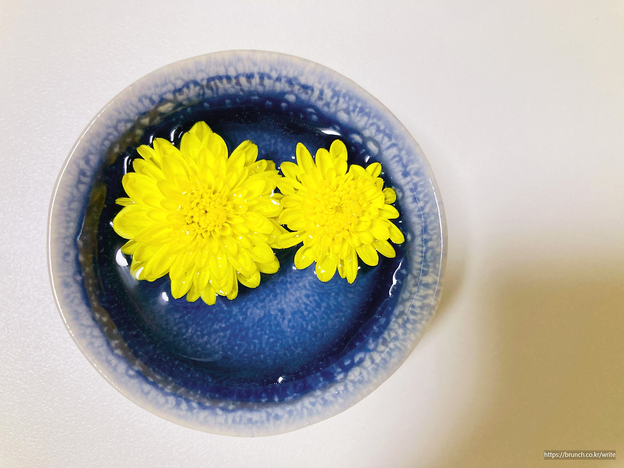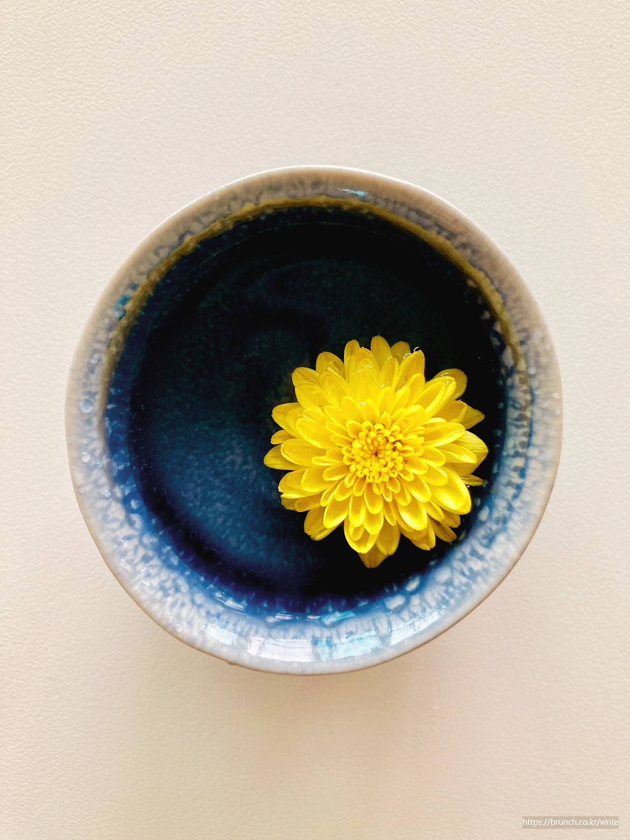 주인집 화분에서 떨어진 국화 한 송이를 주워왔다.