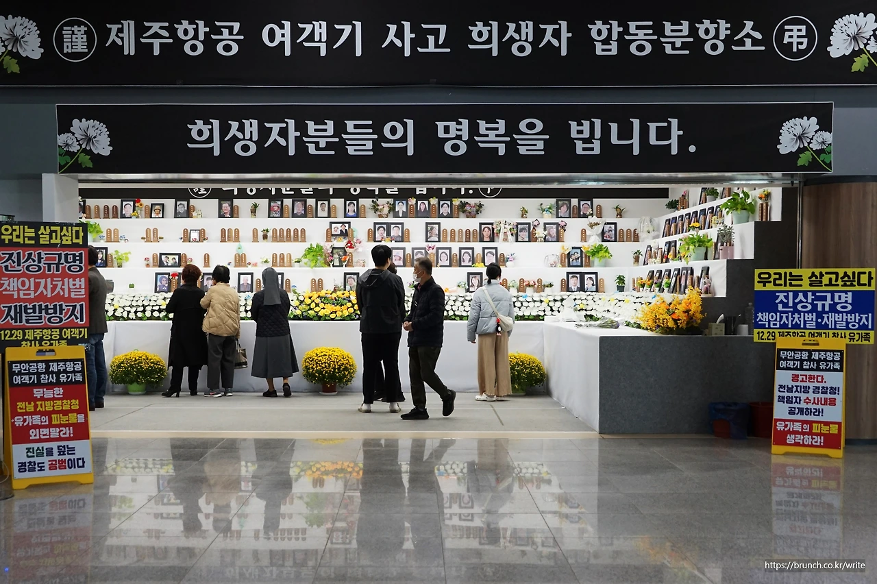 가슴에 맷돌 하나 내리누른 듯했다. 진상규명 촉구와 책임자 처벌과 재발 방지를 부르짖는 분노가 아니라 자책이라니. 유족의 죄책감은 피해자 심리 중 대표적인 하나이다. 나 역시 과거에 어처구니없는 의료사고로 인한 유족이었다. 슬픔으로 인한 심리적 고통은 합리화를 위해 자학으로 변하기 쉽다. 참사의 이유가 밝혀지지 않을 때, 가해자가 처벌되지 않을 때 결국은 가장 손쉬운 자신을 벌하는 참담한 심리. 그래서 참사는 사망자와 부상자만의 사고가 아니다. 일련의 가족과 친척과 친구에게까지 미치는 피해를 환산하면 피해자는 179명에서 1,790명, 17,900명, 179,000명……. 그렇게 미처 잡을 수 없는 물살처럼 확산된다. 세월호 참사 때 전 국민이 외상 후 스트레스 장애(PTSD)를 겪은 것처럼. 그러므로 참사는 반드시 원인을 규명해야 한다. 특히 국민재난안전사고는 더더욱. 그런데 저열하고 잔혹한 인간들은 유족에게 2차 가해를 한다. 보상금 때문에 저런다고.
