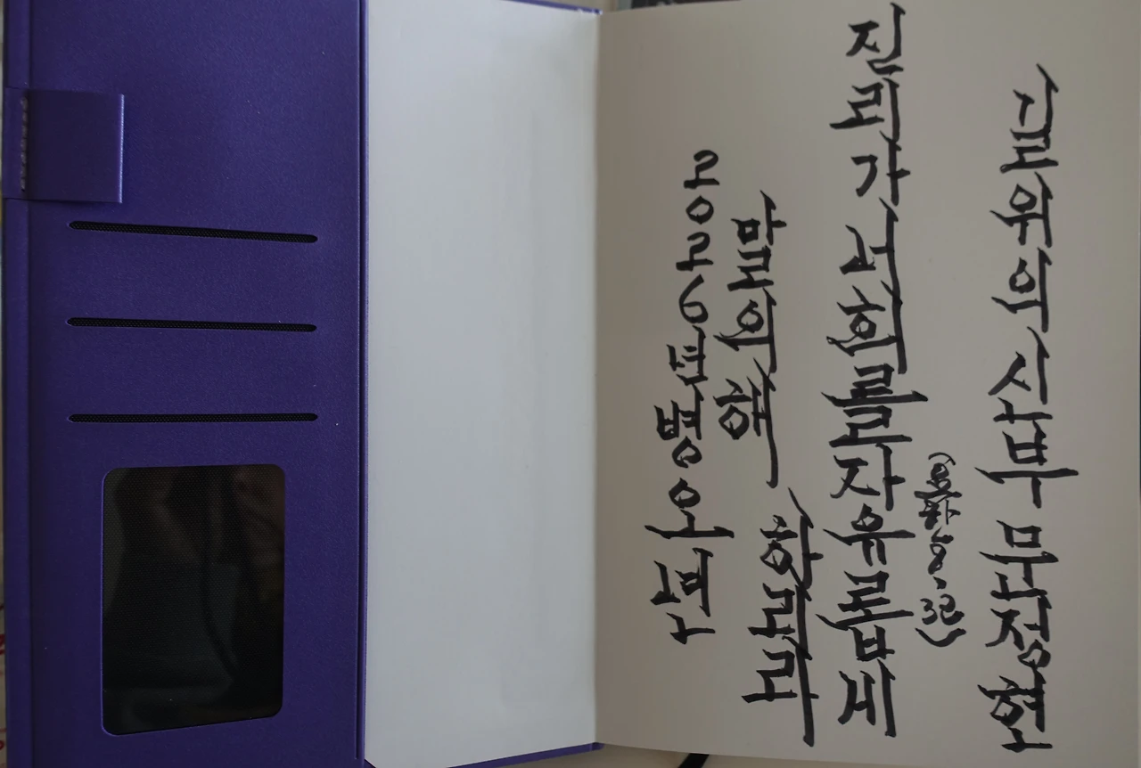 원하는 글귀를 말하라고 하셔서 '진리가 너희를 자유케 하리라'는 말씀을 써주십사 했다.