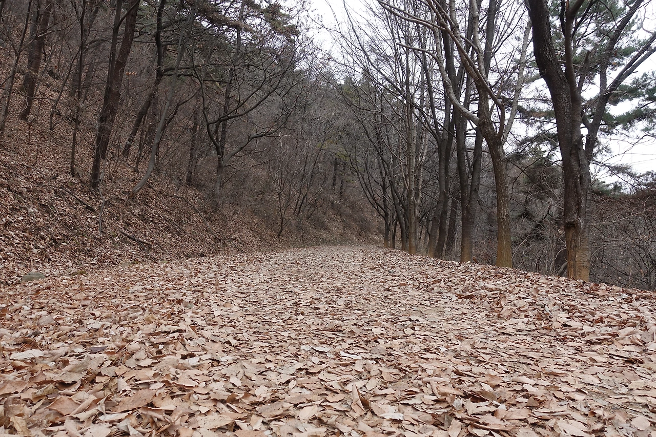 평일 오후라 산에 사람이라곤 보이지 않았다. 산을 빙 돌아 줄기차게 걸었다.