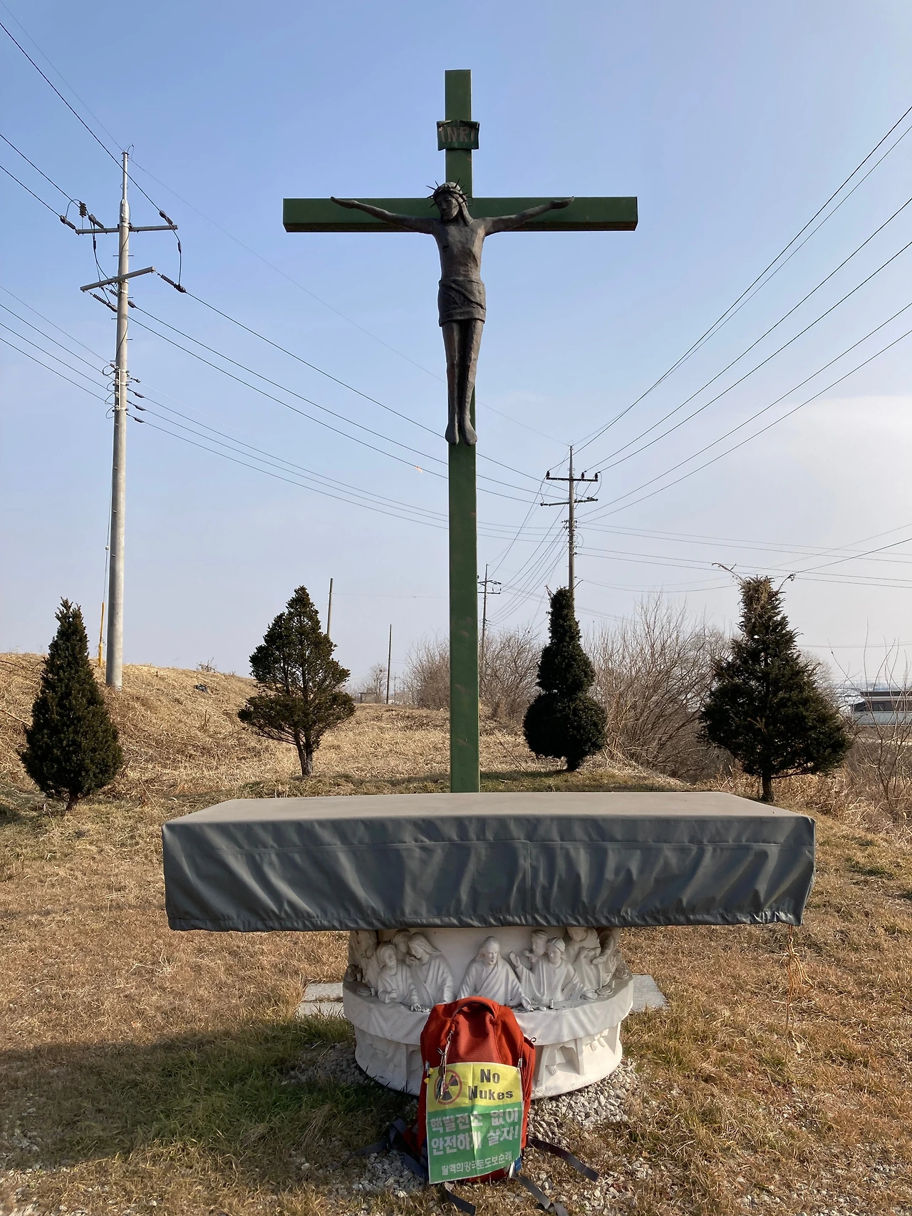 3.2km 지점에 김대건 신부 일행 진입로에도 커다란 십자가 예수상과 성단이 있었다.