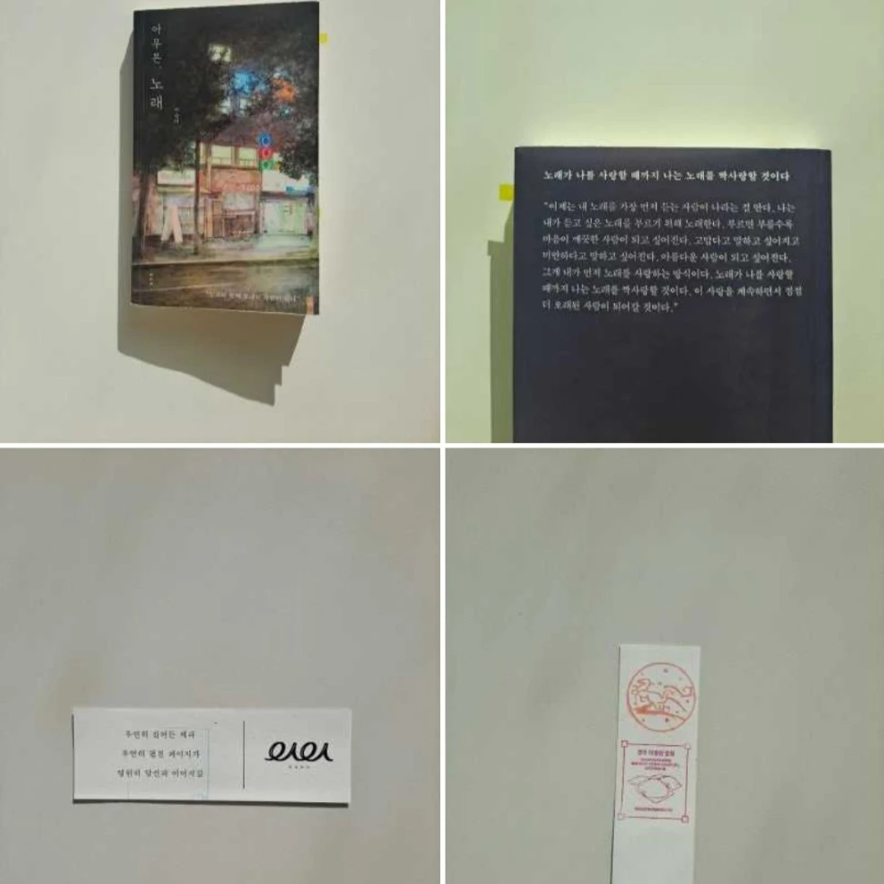 이 책을 읽게 된 건 뜻밖에도 경주에서였다. 가족들과 경주 여행 중 황리단길을 거닐다가 <어서어서>라는 서점을 발견했고 이런 관광지에 서점이 있다는 것을 신기해하면서, 평소 책을 좋아하는 딸과 나는 혼이 책에 이끌리는 듯 그대로 서점 문을 열고 들어 갔다. 서점에 들어서는 순간 내 눈에 가장 먼저 띈 건 오른쪽 코너에 장식품처럼 쌓여있던 위고의 아무튼 시리즈였다. 거기서 맨 위에 올려져 있던 책이 바로 이슬아의『아무튼, 노래』였다. 여기서 또 내가 좋아하는 이슬아를 만나네, 나는 그저 반가운 마음에 책을 집어 들었다. 작고 얇은 편이다. 곳곳에 배치한 경고문(판매할 책이니 두 손으로 조심히 봐달라는 안내문)에도 불구하고 많은 사람들의 손을 타서인지 책의 표지가 이미 접혀 굳어져 있었다. 표지에는 우리가 흔히 볼 수 있는 노래방이 있는 거리의 풍경이 그려져 있었다. 아주 잠깐, 학창 시절 토요일마다 친구들과 노래방에 갔던 추억이 생각나 정감이 갔다. 괜히 겉표지를 쓱 만져 보고 경고문에 유의해 조심히 책을 펼쳤다. 노래를 제일 잘하는 사람도 아니고 전문 가수도 아닌 그녀가 왜 노래에 관한 이 책을 쓰게 되었는지를 읽었다. 거기엔 내가 좋아하는 이슬아가 있었다. 그리곤 책을 내 가슴에 꼭 품었다. 나로서는 아주 드물게 그 자리에서 바로 구매결정을 내린 것이다.