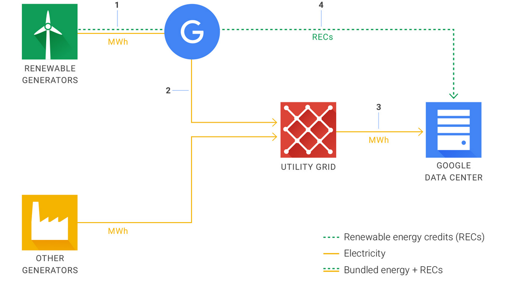 2. 구글은 전력과 REC를 구매 후 전력은 그리드에 다시 되판다.