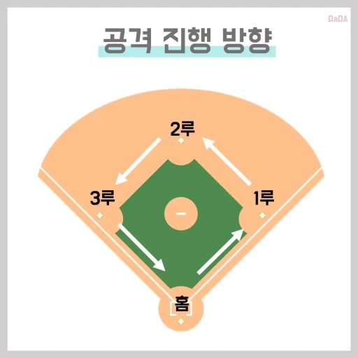 위의 그림에서 보듯 홈에서 출발하여 1루, 2루, 3루를 차례로 통과하여 다시 홈으로 들어오면 점수를 내게 됩니다.