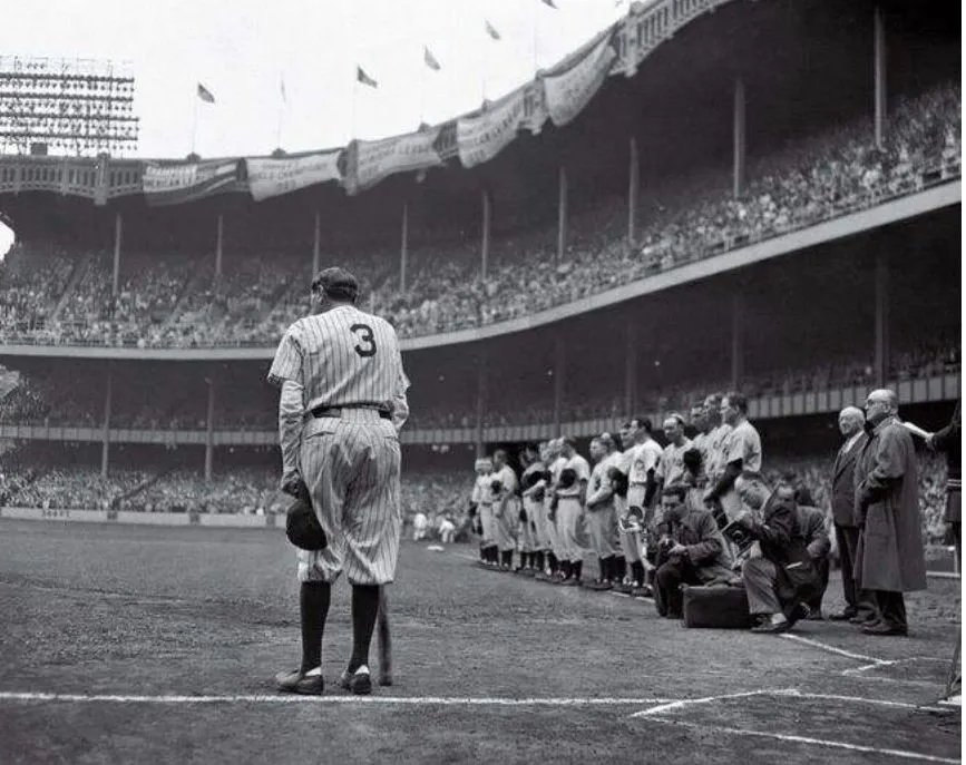 자신의 영구결번 기념 경기에서의 베이브 루스