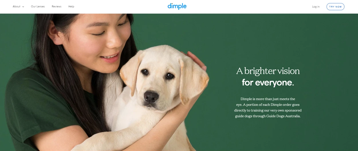 Warby Parker는 보다 근본적인 해결을 위해 35개의 저개발국가에서 18,000명의 안경전문가를 양성하고, 밀레니얼 세대를 위한 남성 웰니스 브랜드 hims와 여성의 생리주기를 고려한 뷰티 솔루션을 제공하는 브랜드 blume는 밀레니얼 세대에 맞는 과감성과 재치 있으면서도 긍정적인 메시지로 사회적 고정관념에 대해 적극적인 대화를 시도합니다. Dimple은 보이는 것 이상의 가치를 말하기 위해 호주에 사는 시각 장애인을 돕는 안내견을 후원하고 있죠.