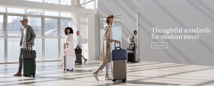 가방이 아닌 여행에 집중한 캐리어 브랜드 Away는 브랜드 네임처럼 어딘가로 떠나는 것에 집중합니다. 여행의 경험을 배가하는데 초점을 맞추었기 때문에 여행자의 숨겨진 불편을 해결해 주는 기능뿐 아니라 여행을 제대로 즐길 수 있는 헤아림으로 그득합니다.