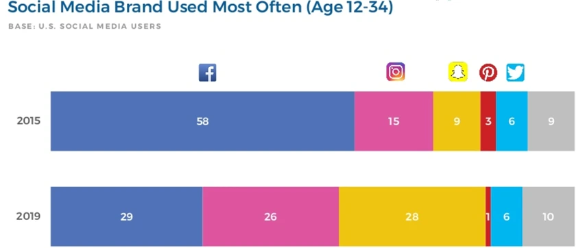 페이스북 사용자가 3년 연속 감소하고 있는 반면 인스타그램은 유일하게 3년 연속 늘어나고 있습니다. 주목할만한 점은 디지털 네이티브 세대인 12-34세 사용자들의 이탈이 크다는 점입니다. 텍스트만으로는 자신을 표현하는 데 한계가 있다는 점, 통제되지 않은 거대 기업들에 의해 상업적으로 이용되고 있다는 점, 가짜 뉴스/편파적인 메시지나 잘못된 정보를 순식간에 전 세계로 퍼지는데 이용되는 문제점을 낳고 있다는 점 등이 페이스북을 등지게 하는 이유들입니다.