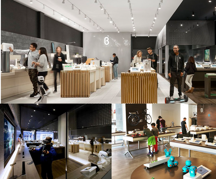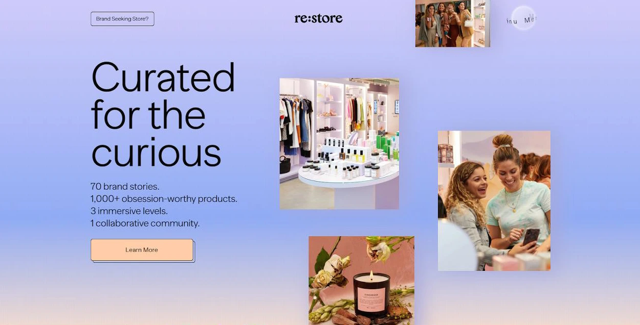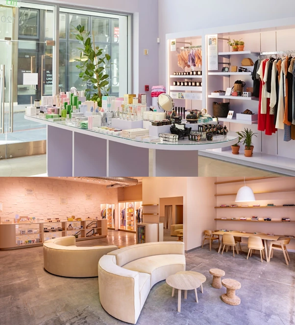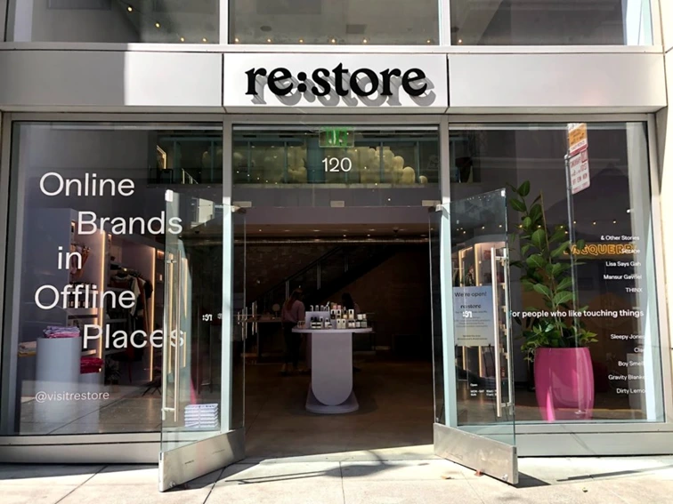 소매의 WeWork라 불리는 Re:store는 최고의 온라인 브랜드를 오프라인으로 가져오기 위해 만들어진 큐레이팅 매장입니다. Sézane, Mansur Gavriel 등 밀레니엄 세대들에게 타겟팅된 브랜드들을 한 지붕 아래에서 함께 제공하며 월 $ 350 정도의 비용을 지불하며 공유 매장에서 제품을 판매할 수 있게 합니다. 실내에는 몰입형, 체험형 및 인스타 그래머 블한 공동 작업 공간도 있습니다.