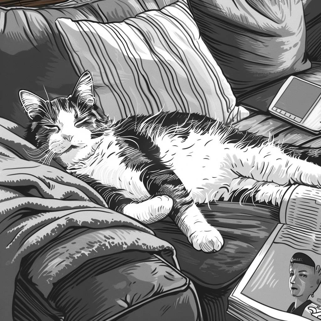 처음엔 네가 좀 주저했어. 소파는 네가 가장 좋아하는 장소였으니까. 하지만 곧 너는 나의 의지를 꺾을 수 없다는 것을 알게 되었어. 나는 소파 위에서 낮잠을 즐기기 시작했고, 그곳에서 내가 편안함을 느끼는 모습을 너도 좋아하게 되었지.