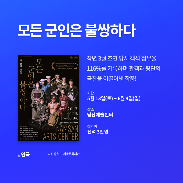 새로운 시대에는 새로운 문화가 제격!핫한 연극부터 거리 공연, 전시, 뮤지컬까지마음에 들면 좋아요 번쩍 누르기!
