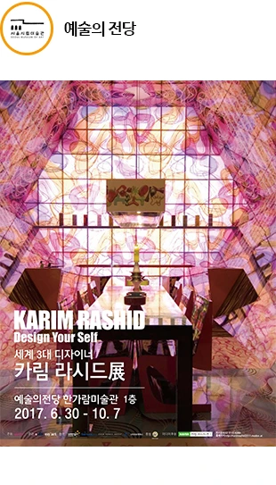 세계 3대 디자이너로 꼽히는 카림 라시드(Karim Rashid, 이집트)의 아시아 첫 대규모 작품 전시. ‘나를 디자인하라’는 주제로 열린 이번 전시는 뉴욕 스튜디오에서 소장한 디자인 스케치 원본과 조형물, 가구 등 350여 점에 이르는 작품이 국내 최초로 공개되며, 작품해설이 담긴 오디오 가이드는 배우 하지원의 목소리로 녹음됐다.