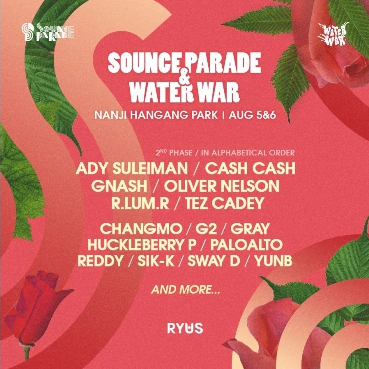 8월 5일부터 6일까지 난지 한강공원에서 펼쳐지는 ‘사운스 퍼레이드&워터워’도 이색적이다. 음악과 휴식, 물총싸움, 워터슬라이드, EDM 요가존, 플라워 워크숍 등을 즐길 수 있는 음악 바캉스가 주된 내용이다. 사전 예매는 홈페이지(www.ryusmall.com)에서 진행하며, 현장 예매도 가능하다. 1일권 5만 5,000원, 2일권 8만 5,000원.