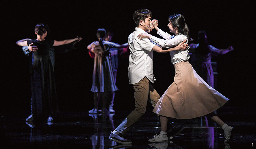 자칫 구전 설화처럼 들릴 뻔한 이야기를 그럴싸하게 풀어내기 위해, 뮤지컬은 개연성의 벽돌을 섬세하게 쌓아올리는 정공법을 택한다. 다시 태어났어도 연인은 물건을 들 때면 새끼손가락을 펴고, 숟가락과 젓가락의 첫 글자 받침이 다른 이유를 묻는다. 대학 시절 ‘오른발, 왼발’ 하며 함께 췄던 왈츠의 옛 기억은 현재의 학교 운동회에서 2인 3각 경주로 되살아난다. 배우 이병헌과 고(故)이은주가 주연한 동명의 영화에서 꼼꼼히 옮겨온 설정들이다.