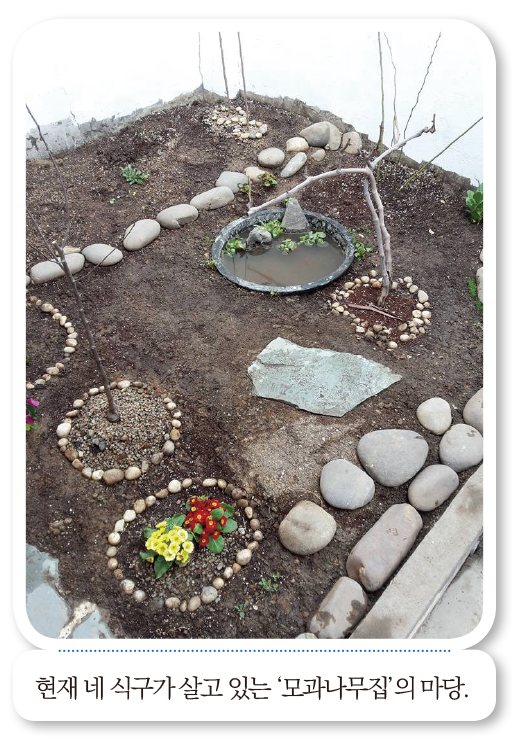 10년간의 스페인 유학을 마치고 한국으로 돌아온 후 아내와 딸둘, 나까지 네 식구가 살 곳을 정해야 했다. 아파트에서 초·중·고, 대학까지 졸업한 ‘아파트 키드’였지만 출퇴근을 하지 않는 내게 아파트는 그다지 좋은 유형의 집이 아니었다. 아이들이 자연을 접할 기회가 너무 적기 때문이다. 결국 산과 강, 공원이 가까운 광진구 중곡동, 40년 된 2층집에 자리를 잡게 되었다. 대문 옆에 커다란 모과나무가 있어 동네사람들은 이 집을 ‘모과나무집’이라고 부른다. 사실 전 주인이 가지를 모두 잘라버려서 처음엔 나무가 눈에 들어오지도 않았다. 사람 사는 집에는 살아 있는 것들이 주는 ‘생기’가 있어야 한다. 혼자서 곡괭이를 들어 마당의 시멘트 바닥을 걷어내고 그 자리에 풀과 꽃을 심었다. 이제 2년이 지나 마당도 어느 정도 자리를 잡았고, 모과나무에도 여린 가지들이 자라나서 이제야 조금씩 나무처럼 보이기 시작한다. 우리 아이들에게 이 집이 상도동 ‘골목 끝집’처럼 생기 넘치는 공간이 되었으면 한다.