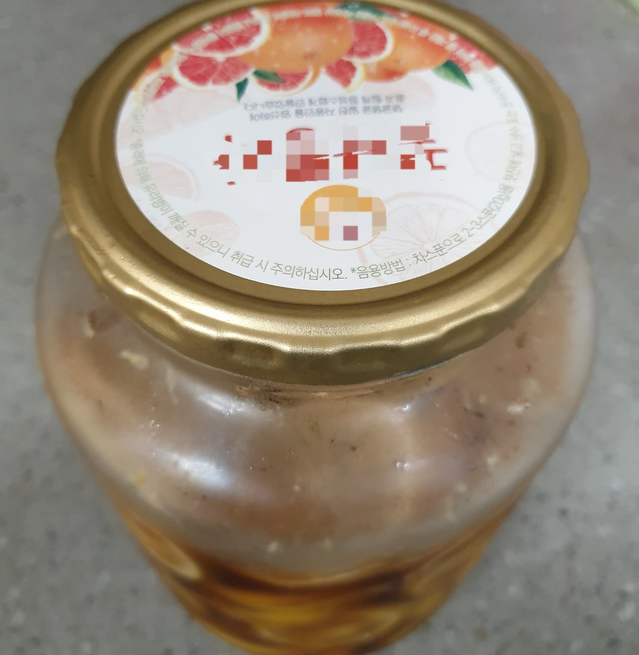곰팡이 낀 청귤청. 세병 중에 두병은 버리고, 먹을 수 있을까 하고 냉장고에 넣어두었던 것.