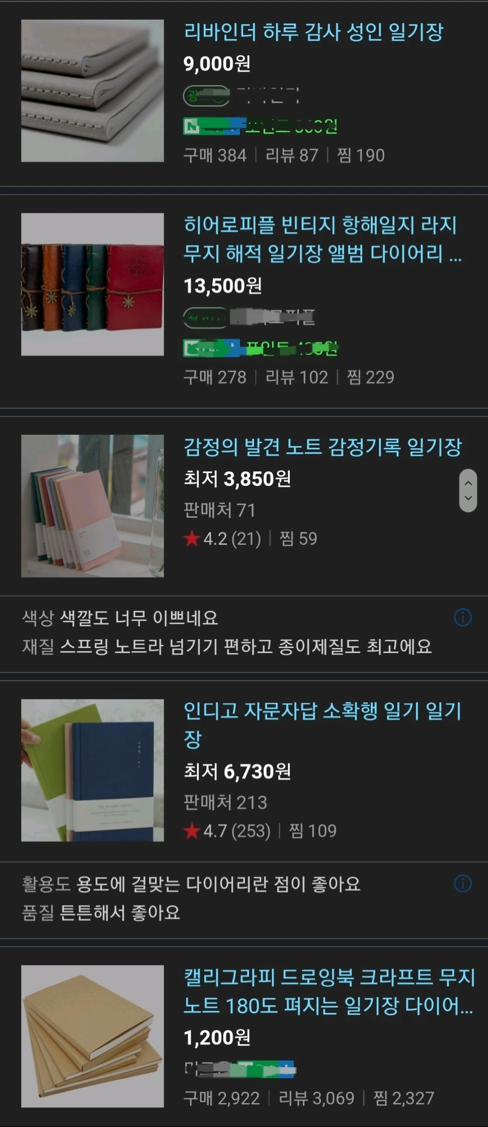포털 사이트에 일기장이라고 검색하면 다음과 같이 창이 뜬다.품명: 일기장