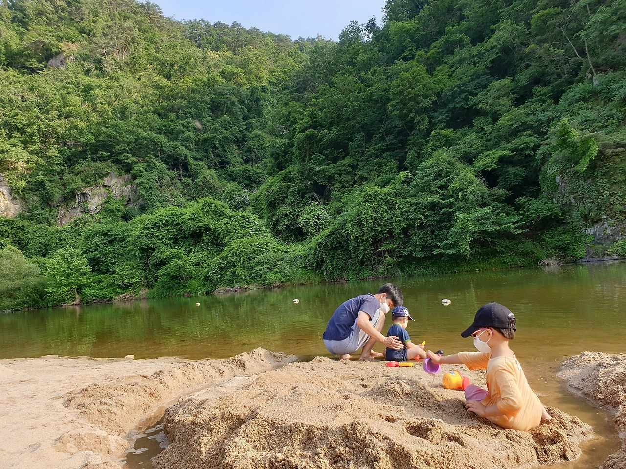 첫째 아이가 오크밸리에 있는 놀이공원에 가자고 졸라댔다. 놀이공원은 아빠 월급 받으면 가자하고 대신 간현 유원지에 데려갔다. 아름다운 자연에서 마음껏 물놀이, 모래놀이를 했다. 아이는 영원히 놀 것처럼 놀았다.