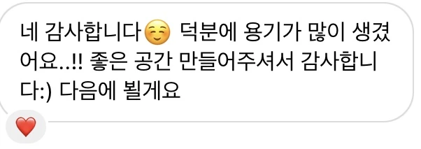 누군가에 용기가 되는 일이 될 거라는 생각이나 감사하다는 인사를 듣게 될 줄은 몰랐다.