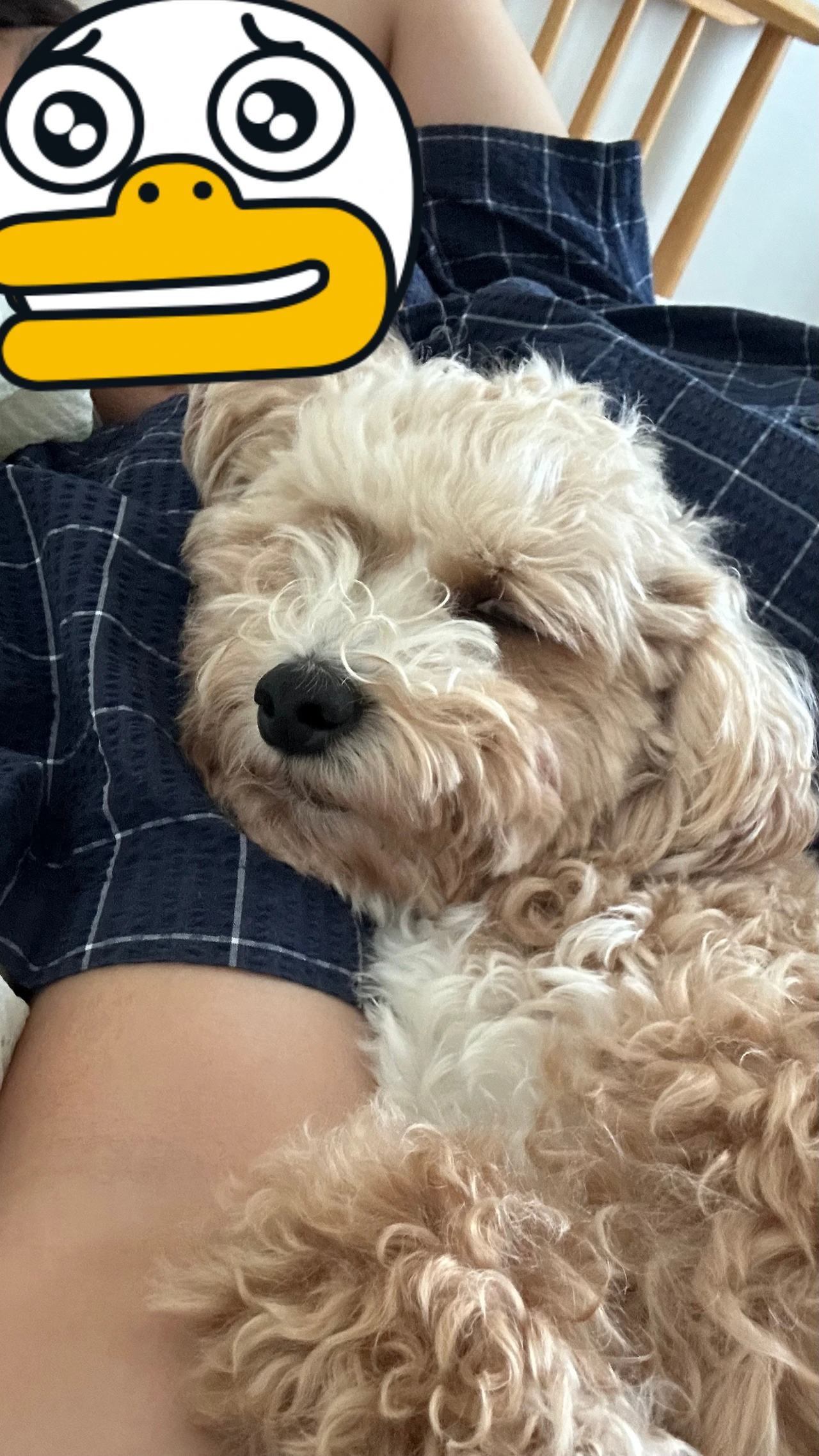 쿠키가 '다다다닥'하며 사다리를 타고 침대 위로 올라와 내 겨드랑이를 파고들며 누웠다. 그러곤 팔을 이리저리 핥아주기 시작했다.