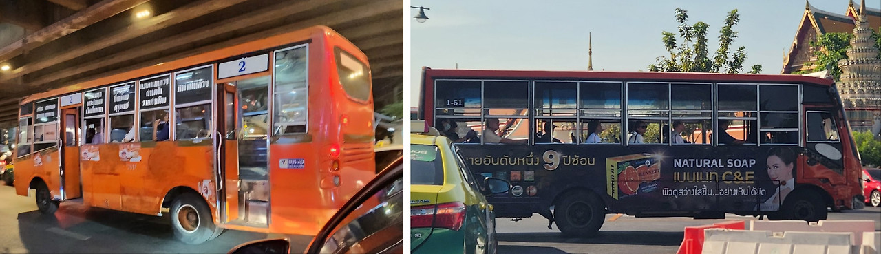 9월의 방콕 날씨는 34도와 35도를 오르내리지만 시내버스 안의 온도는 21도로 시원하고 쾌적하다. 내가 탄 시내버스 옆으로 커다란 트레일러를 두 개 연결한 긴 트럭이 시꺼먼 연기를 내뿜으며 지나간다.