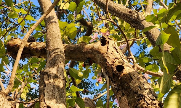 결국 사진 찍기에 성공했다. 집에 와서 찾아보니 Copper Smith Barbet이란다. 구리를 두드리는 구리세공업자 소리를 낸다고 나와 있다.