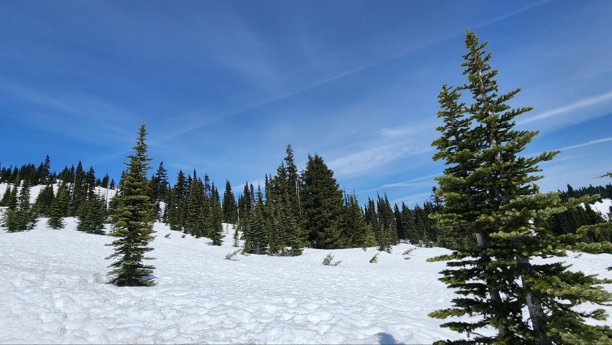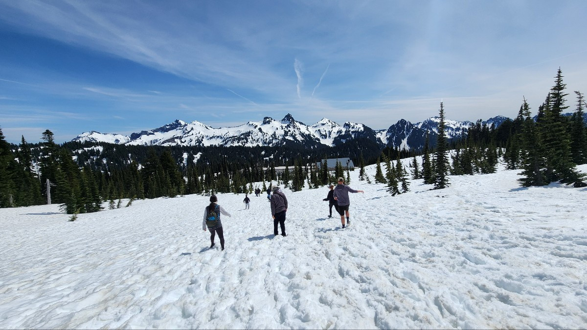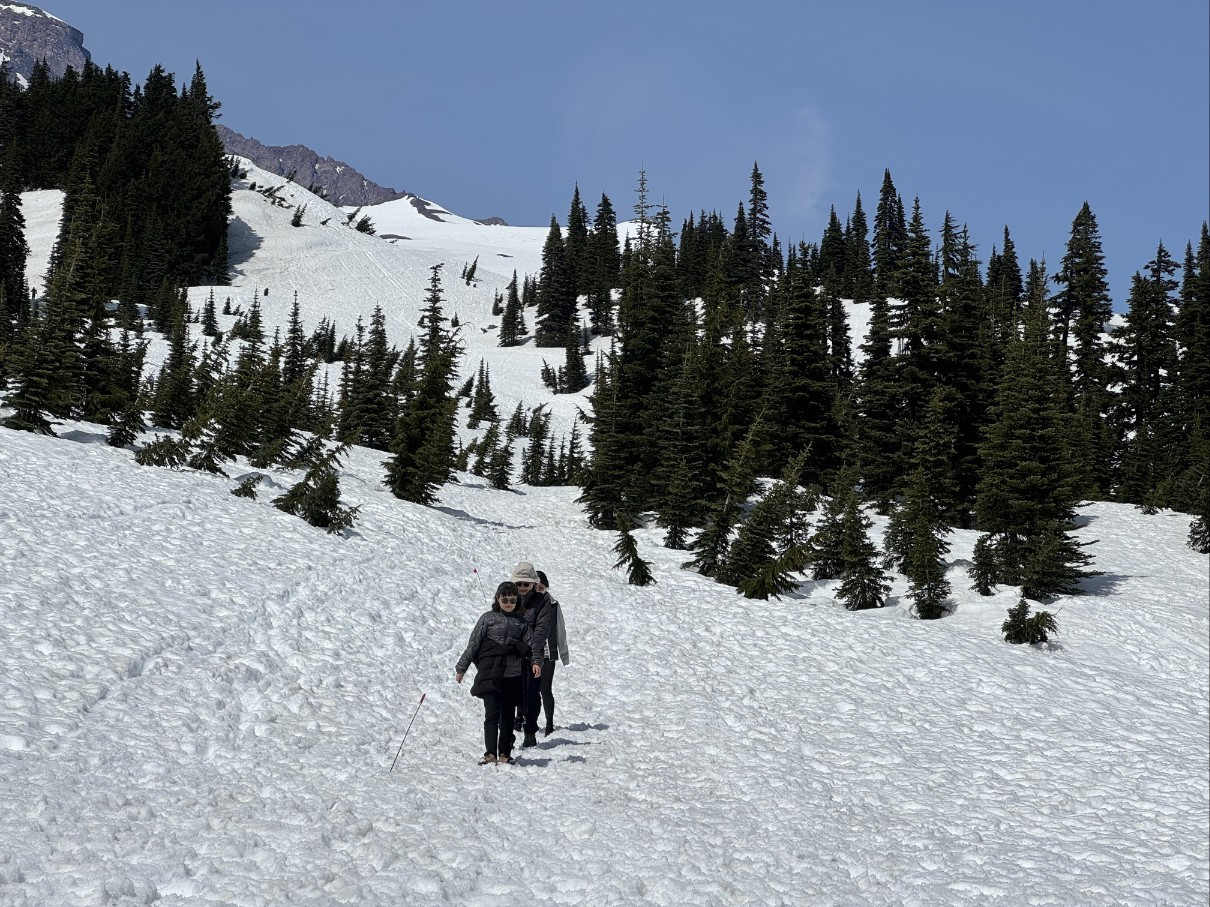 파란 하늘과 쾌청한 날씨, 아이젠을 착용하고 눈 쌓인 레이니어산을 올랐다. 눈 속에는 크리스마스트리인 전나무들이 군데군데 서 있었다. 길은 초입부터 오르막이 가팔랐다. 푹푹 빠지는 눈 속을 걷는 것은 힘들었다. 헉헉거리며 속도가 점점 느려지는 나를 보고 사위가 말했다.