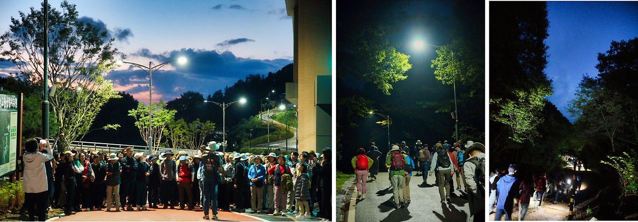 진안고원의 밤길을 걸어 별 보러 가는 날, 그날 밤의 목표는 별이 쏟아지는 숲길을 걸으며 숲 치유를 하는 것이었다. 새로 개장한 국립진안고원산림치유원에서 진안의 농산물로 만든 음식으로 저녁 식사를 하고, 산림치유 프로그램에 참석해 여러 가지 체험을 했다. 출발할 때부터 먹구름이 잔뜩 끼어있던 하늘에서는 비가 내렸다. 비옷을 입거나 우산을 쓰며 걷기 시작했다. 방문자센터에서부터 치유정원까지 3.5km의 어두운 숲길을 걸었다. 준비물에 헤드랜턴과 손전등이 있었는데 미쳐 준비하지 못한 나는 앞서가는 사람의 손전등에 의지한 채 그와 함께 걸었다. 숲 속으로 들어서자 갑자기 내린 비로 중간에 움푹 파인 작은 개울들이 여러 군데 생겼고 신발이 물에 젖었다. 앞은 보이지 않고 울퉁불퉁 튀어나온 돌들까지 발부리에 걸렸다. 식은땀이 흐르고 긴장되었다.