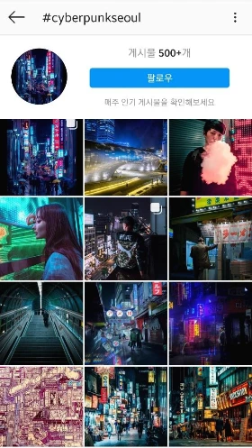 인터넷 좀 해본 사람이라면 ‘사이버펑크 드립’을 종종 들어봤을 것이다. 고층빌딩을 배경으로 네온사인이 가득한 한국 도시의 야경을 보면서 한국인들은 이를 별로라고 하지만, 막상 해외(특히 서구권) 네티즌들은 ‘사이버펑크스럽다’며 환호하는 모습을 두고 “이것이 힙한민국의 사이버펑크다”라고 하는 등이다. 실제로 한국, 특히 서울은 해외 사이버펑크 팬들 사이에서 ‘네오 서울(Neo Seoul)’, ‘사이버펑크 서울(Cyberpunk Seoul)’ 등의 별칭으로 유명하다. 레딧(Reddit) 등의 해외 커뮤니티나 인스타그램 등의 SNS에서 Cyberpunk Seoul을 검색하면 <그림1>처럼 수많은 인기 게시물이 뜰 정도이다.