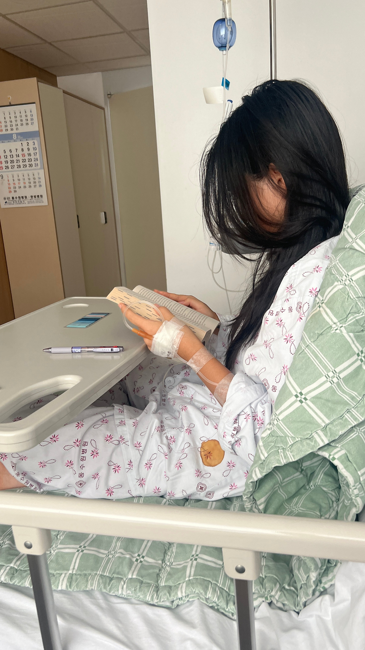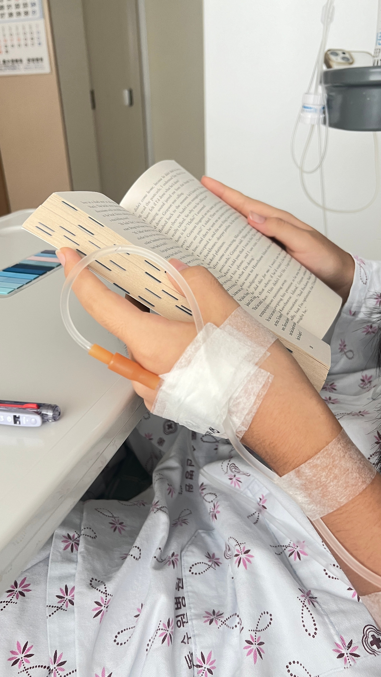 어느 정도 회복이 된 아이는 책을 읽고 영어 문법공부를 하고 있다. 지루한 병실 생활도 오늘이면 끝이니 조금만 힘내자.