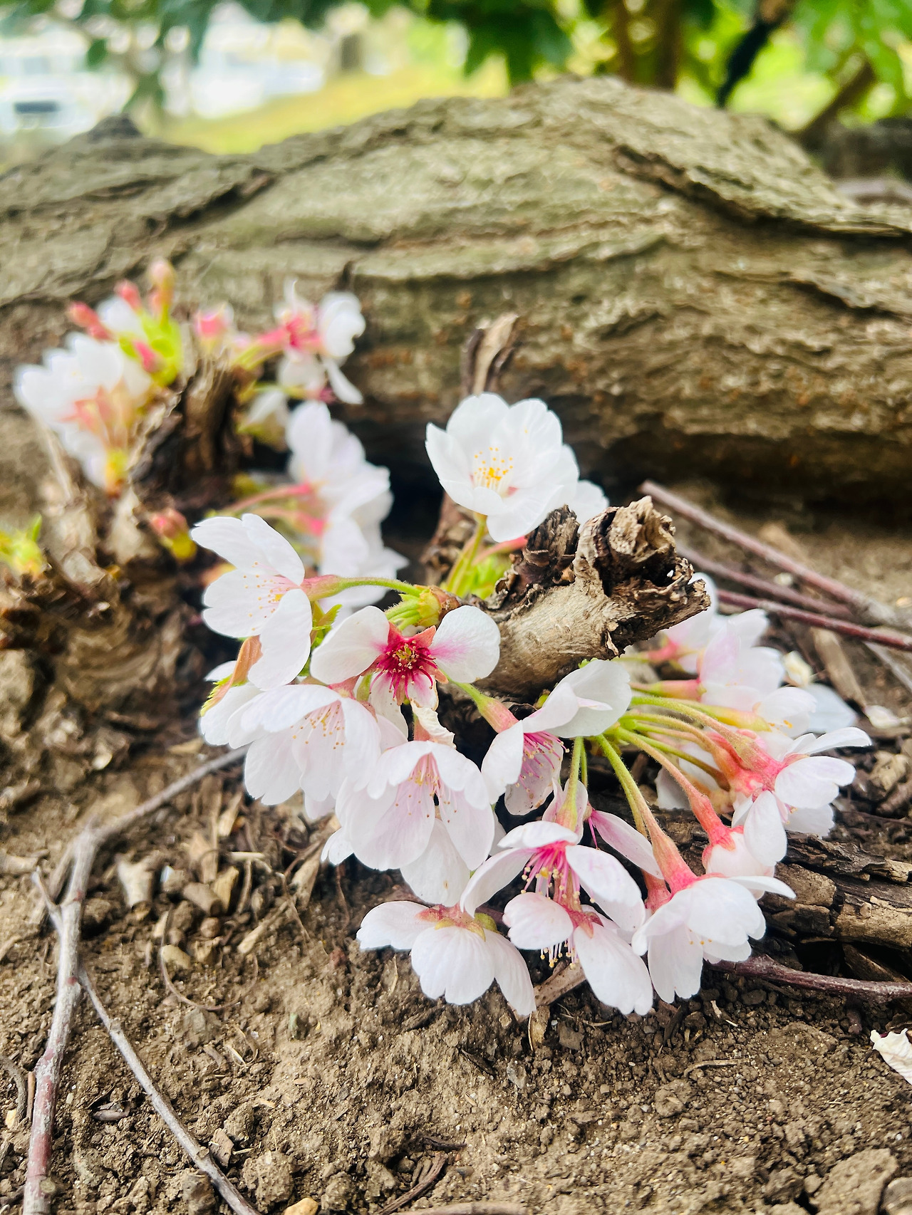 처음엔 떨어진 꽃잎인 줄 알았는데, 자세히 보니 땅속에 뿌리를 내리고 단단히 서 있는 작은 벚나무였다.