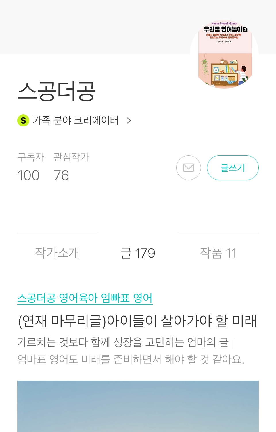 저는 유명하진 않지만 꾸준하게 아이들과 함께 성장하는 엄마입니다. 가끔 멘털관리가 안될 때는 글을 씁니다. 못 써도 그냥 쓰고 나면 소용돌이치던 부정적인 감정이 어느새 잠잠해집니다.