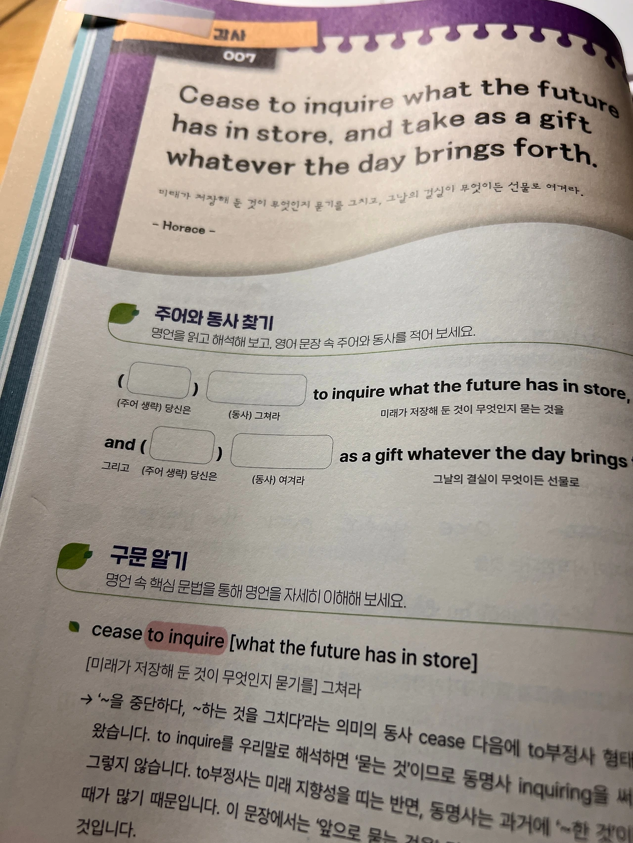 그래서 영어공부를 하면서 많이 외우고, 기억하려고 해요. 아이들이 공부할 때 저도 같이 영어 공부하면 좀 더 많은 시간을 아이들과 함께 볼 수 있겠죠. 7일밖에 되지 않았지만 전 빠짐없이 했다는 것만으로도 아주 만족해하고 있어요. 한 번 빠지면 또다시 시작하는 것이 어려운 거 아시죠... 저도 수많은 도전을 그렇게 합리화하면서 포기를 했었어요. 근데 지나고 나면 미래에는 후회로 기억을 하겠죠.