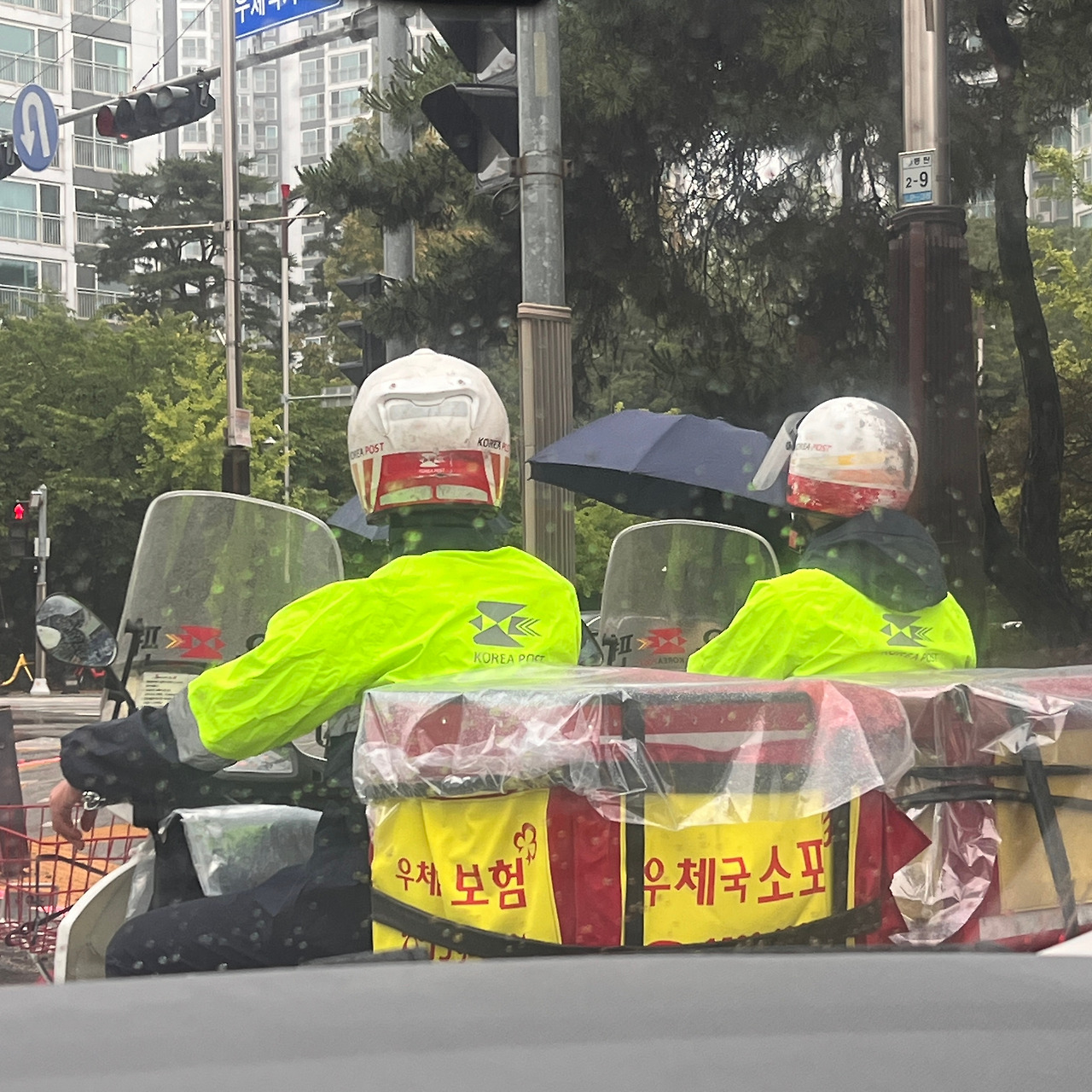 빗길에 우비를 쓰고 우편물을 배달하시는 분들을 바라보며 안전 운행하시길 마음으로 기도했다.